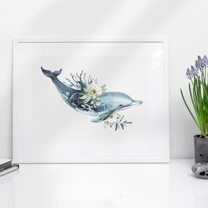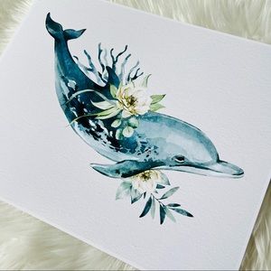 Wall Art Watercolor Dolphin Print Poster Unframed