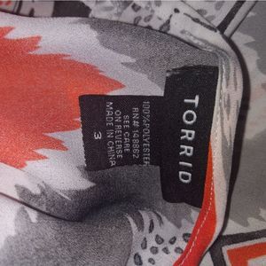 Torrid Plus Size Blouse Size 3 Measurements Approx: Shoulder to Bottom Front Hem 26 Inches Pit to Pit 28 Inches Longer in back than the Front 100% Polyester Machine Washable Item #10835538 Cut #H160193 Cut Date: 12/30/2016 2017 Summer 2