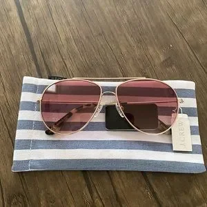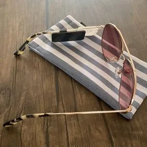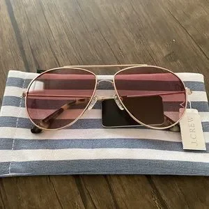 J. Crew Bondi Wire Frame Aviator Sunglasses. Really well made. Medium shade coverage. Color is Rose Gold. Brand new with tags. Comes with stripped cloth case.