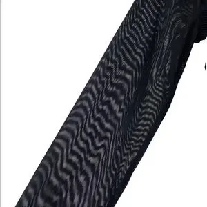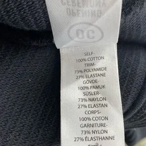 Black synthetic crepe (65% Polyester, 33% Rayon, 2% Polyurethame) Long sleeves. Crew neckline. Sheath bodice. Lined. 41 from shoulder to hemline. Imported.