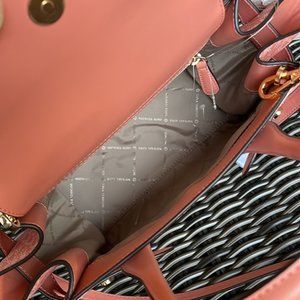 Michael Kors Carmen Medium Color-Block Logo Flap Satchel Sherbert