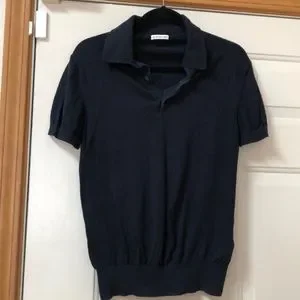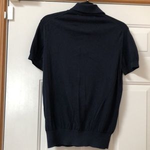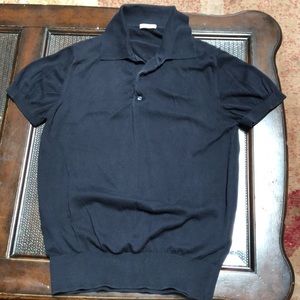 Moncler Men’s Polo Shirt with collar and banded bottom, slim fit. In good pre-owned condition, no stains or rips. Dark navy color. Smoke free home