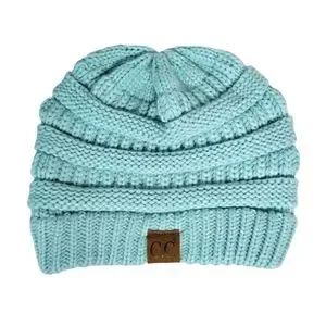 CC Resorts teal blue crochet knit beanie
