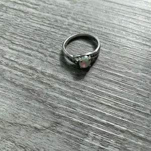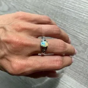 Beautiful Opal ring sparkles in every color of the rainbow. Perfect for October birthdays. Stamped 925 inside. Size 7.
