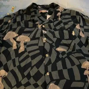 UO Warped Shroom Camp Shirt, Teal, S, M, L, and XL, NWT