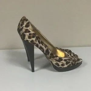Steve Madden cheetah print. Open toe heels. 4 1/2 inch heel. Size 7 1/2