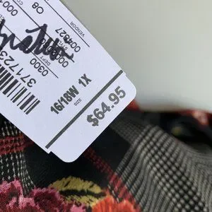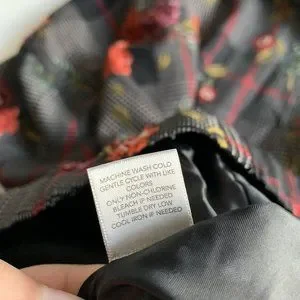 Plaid houndstooth and floral pattern. Full zip.