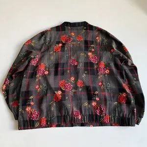 CJ Banks NWT Bomber Jacket Lightweight Floral Plaid Size 1X