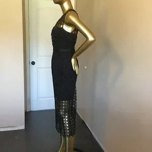 ᑕYᑎTᕼIᗩ ᖇOᗯᒪEY Sleeveless Lace-Mesh-Overlay Midi Dress in EXQUISITE Condition!