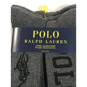 Polo Ralph Lauren Big Pony Socks Mens One Size 6-Pack Gray Black