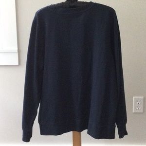 This sweatshirt by L.L. Bean is a Navy blue long sleeve garment of 95% cotton and 5% spandex — soft, very soft, for a sweatshirt.