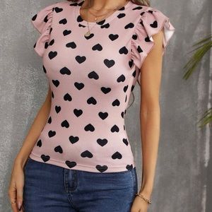 NWOT Heart design ruffle tee