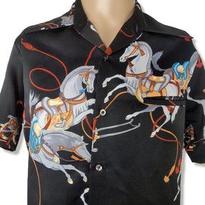 Vintage 80s Tori Richard Asian Horse Cart Hawaiian Button Front Shirt