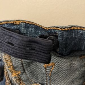 like new condition, frayed hem, button fly, adjustable waistband. Also fits like women's size 23P.