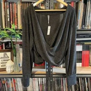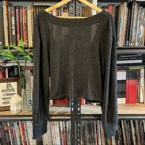 Anthropologie Criss Cross Cropped Sweater. Heathered black color. House brand 2 way sweater. You can wear this sweater in two ways, cross over side on the front or wear the criss cross side at the back. Brandnew with tags. See photos for approx measurements laid flat.