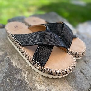 Amazing perfect condition almost like new some sparkle on the straps comfortable foot bed like walking on air