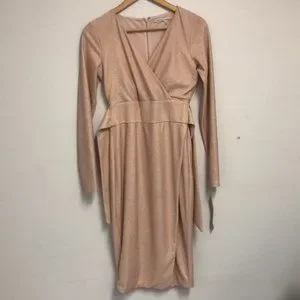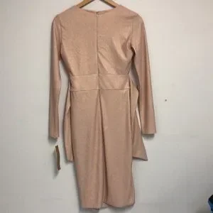 RACHEL Rachel Roy Women's Pink Long sleeve Rib Knit Foil Dress With Tie Waist