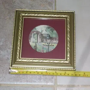 EUC, "Courtyard" print matted & framed in ornate wood frame