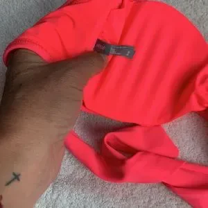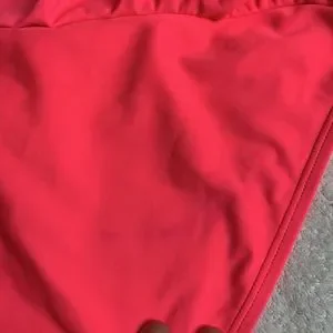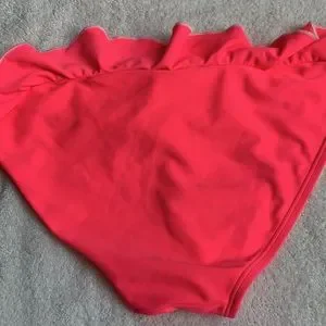 Bright pink, aerie bikini set. Bandeau top with ruffle detail. Ruffle detail on bottoms. A little stain or discoloration on bottoms, can see in pictures. No snags, great condition.
