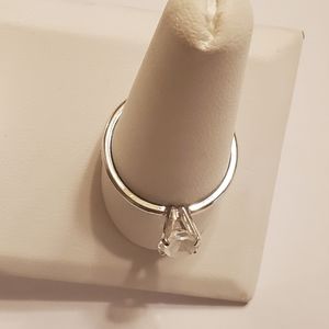 Size 11 vintage, Uncas (hallmarked) silver and clear crystal ring.
