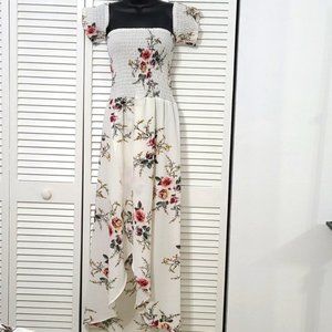 Reposhing this item I purchased from @aishastar. Loved it, but ready to rotate for something new. NEW XL Floral Off the Shoulder Maxi Dress. Never wore. Purchased for a beach wedding that got cancelled due to Covid. They Eloped! LOL Beautiful, Light Weight, Flowy, High-Low.