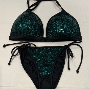 SOLD/Victoria’s Secret Black & Green Sequin Bikini