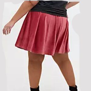 Torrid Textured knit fabric mini circle skirt. Wide waistband with elastic on both sides in the back. Front pockets.