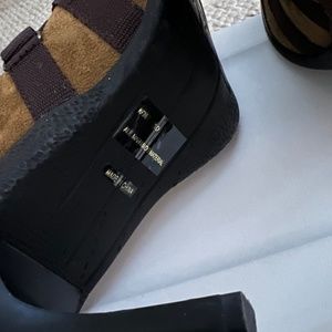 I wish my knees could handle this bootie. I LOVE them but never wore them. Blue insert with brown suede.