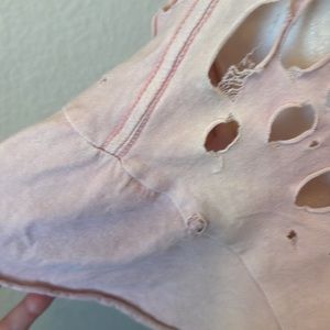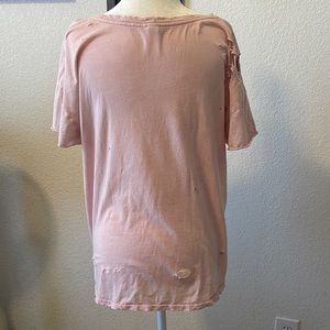 Light dusty rose, distressed in all the right places!! Faint fading in certain spots is part of the look. EUC