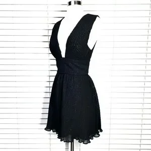 🚫SOLD! NWT🤩|•LA MAISON TALULAH•| V Pleated Chiffon Blk w/Gold Sparkle Dress