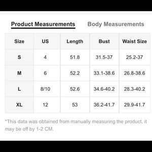 Tag S fits 4, Tag M fits 6, Tag L fits 8/10, tag XL fits 12