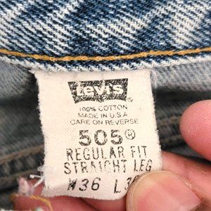 Levi's 505 VTG Made in USA Regular Fit Straight Leg Destroyed Jeans Size 36x30. Style number is 40505-4813. Made of cotton.