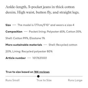 Nearly new H&M Straight High Ankle Jeans in the shade 'Light Denim Blue'!! Size 6, fit true to size (I'm 5'6", 125lbs and wearing size 6). Worn twice, washed once in cold water and air dried. Originally paid $37.99 +tax ($42.93). Sold out online!!