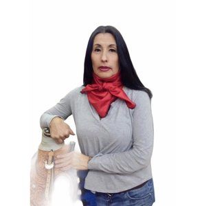 Rich textured style. Generous “36×36” size. Sumptuous Poly/charmeuse blend. Large enough to be worn ‘cowboy wild rag’ style. We use non-fraying fabrics, our edges are serged only once due to this fact. Hand cut and sewn by us.Made in our shop in the USA! The second photo is to show a style option only! You will receive the rag in the first photo.