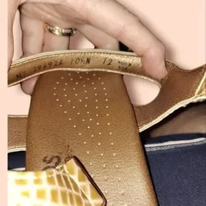 Tags: neutral comfort sandal flat walking supportive crocodile dressy narrow casual tan leather