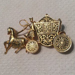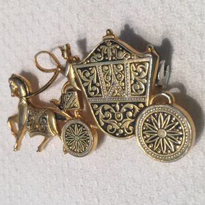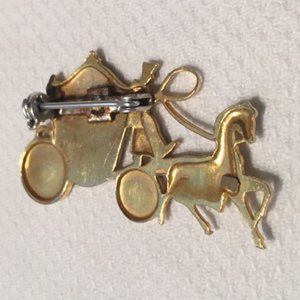 Beautiful, very detailed horse, carriage and driver Damascene brooch | pin. It measures ~ 1 3/4" x 1" and is in very good condition.