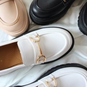 🚨FEW PAIRS LEFT// Chain detail White Platform Loafer