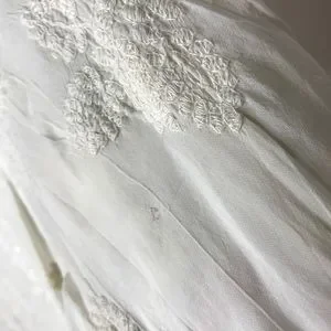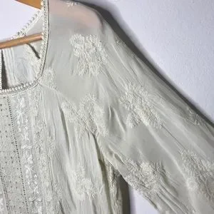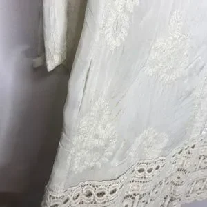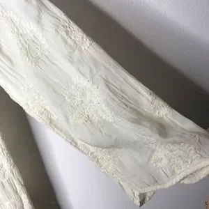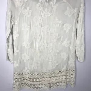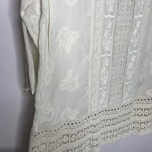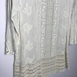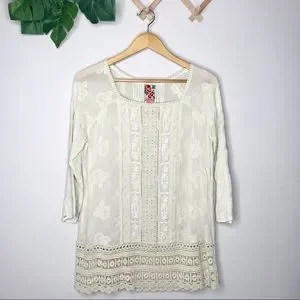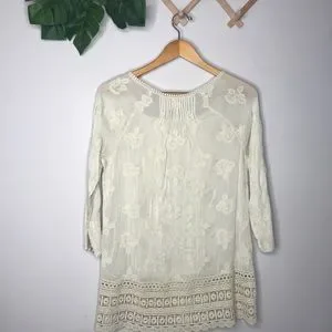 Cream colored embroidered 3/4 sleeved tunic with crochet tunic