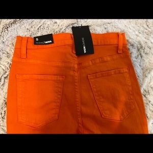 Bright Orange ripped Fashion Nova jeans. Nice quality and stretch.