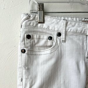 Classic white skinny jeans from Free People. Front and back pockets and adorable bird detail on button.
