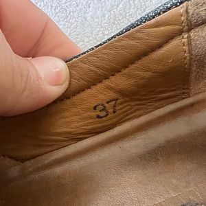 Condition: GUC. Shows signs of wear on insole and some fading on the denim throughout. Please see all photos.