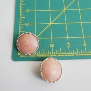 vintage Ellen Designs Silver Tone Pink Button Clip Earrings.