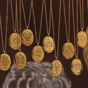 AQUARIUS--NEW 18K Gold Plated Sign Zodiac Oval Pendant Necklace