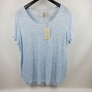 JOIE 100% Linen Short Sleeve Top High Low Round Neck Blue White NWT Plus Size 1X
