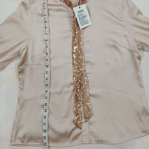 Satin dusty pink shirt with sequenced neck design
