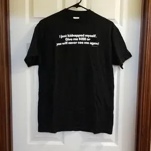 Very gently used funny tshirt! I do not know much about the brand or place it is from. Feels like good quality, medium to heavy cotton. Mens size medium.