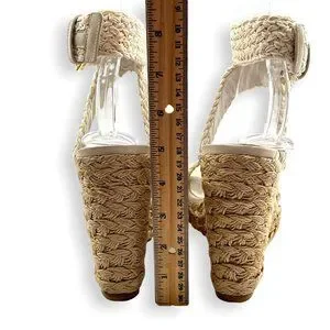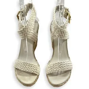 STUART WEITZMAN ESPADRILLE WEDGE SANDAL Size 10 Ivory Nude ALEX Crochet Platform