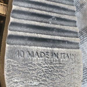 EUC, Browns size 10, made in Italy leather sandals in silver and black with back zip, matching soles in brushed black and silver.