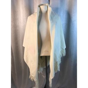 Stunning vintage, hand embroidery in floral pattern of bright color yarn on this medium weight wool shawl with fringed edge. As it folds in half, it is wearable with either floral or solid cream side showing. The Large size will create a 3/4 length sleeve and hang to mid thigh front and back. No flaws in the fabric. NO color bleed at all. Solid interior shows 4 spots(see photo for the largest. All other are pinpoint size). I have not attempted to spot treat.
