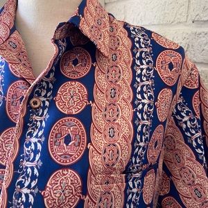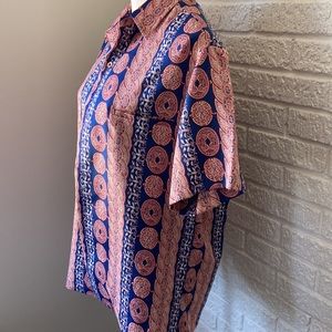 VTG Asian inspired polyester button down shirt.